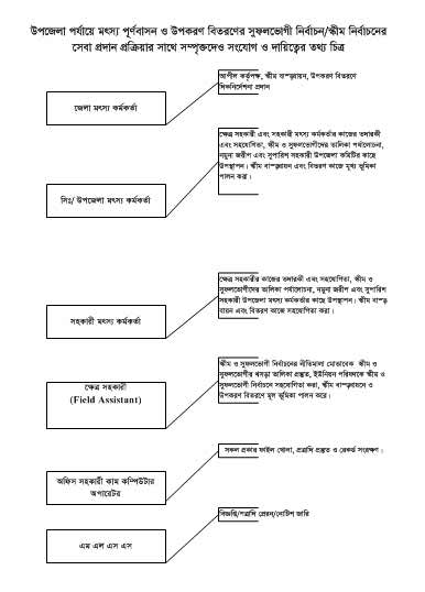 | ১১। | উর্ধতন কর্তৃপক্ষের নিকট তথ্য প্রেরণ | সিনিয়র উপজেলা মৎস্য কর্মকর্তা, সহকারী মৎস্য কর্মকর্তা, ক্ষেত্র সহকারী এবং অফিস সহকারী | সরবরাহকৃত ফর্মে প্রয়োজনীয় তথ্য সরবরাহ | ১-১৫ দিন | - | প্রযোজ্য নয় | জেলা মৎস্য কর্মকর্তা |